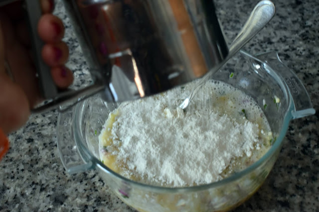 Deja reposar la mezcla, mientras pones una sartén con bastante aceite, deja que se caliente bien y con una cuchara grande ves echando porciones y deja que se frían bien, por los dos lados.