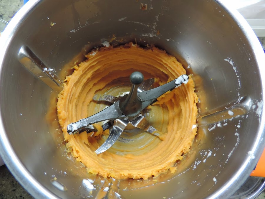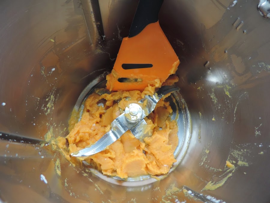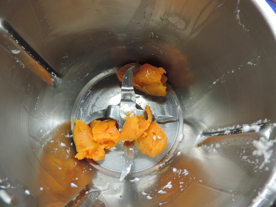 Poner el boniato ya frío en el vaso y la hacemos puré,