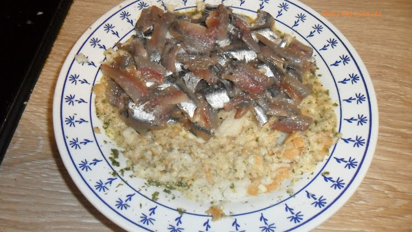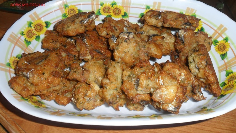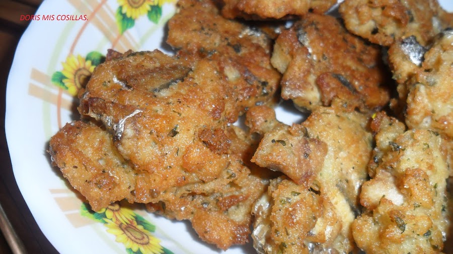 batimos en un plato, el huevo, agregamos ajo picadito, perejil, un poco de sal y pimienta negra molida .Ponemos en remojo en agua templada un trozo de pan como 200 gr lo escurrimos con las manos y desmenuzamos encima de los boquerones 250 gr a trocitos, las dos cucharadas de harina con levadura y con una cuchara juntamos todos los ingredientes.
