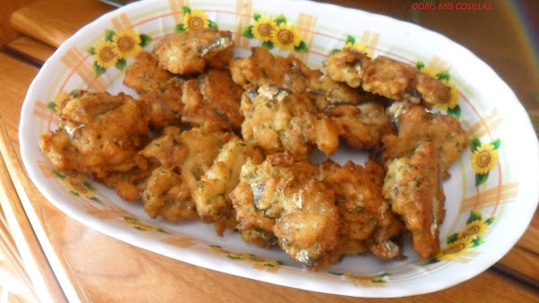 Retiramos los buñuelos de boquerones sobre papel absorbente y servimos enseguida. que es como mas ricos están.