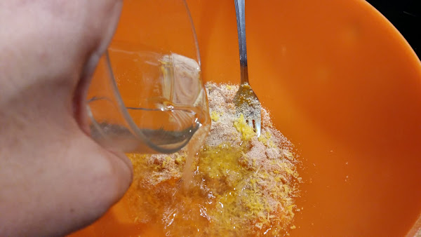 Añadimos la levadura. En mi caso he usado de la de en polvo, pero si usas la fresca, has de añadirla diluida previamente en el agua tibia.