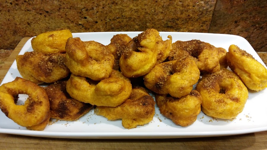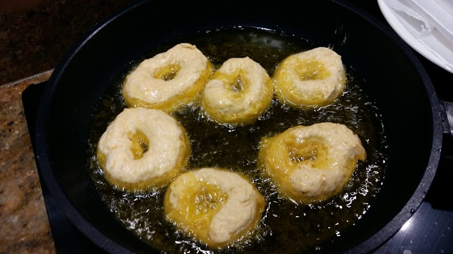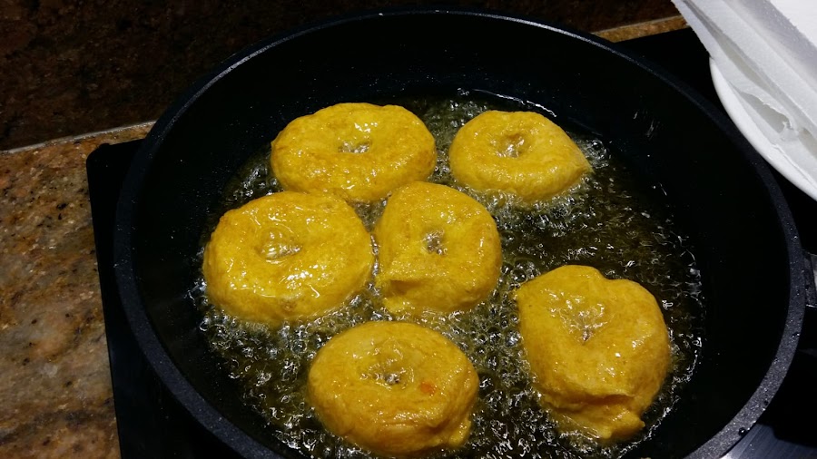 Le hacemos con el dedo el agujero a la bolita y ya tenemos el buñuelo hecho. Freír.