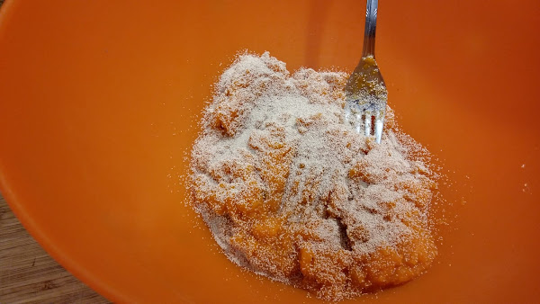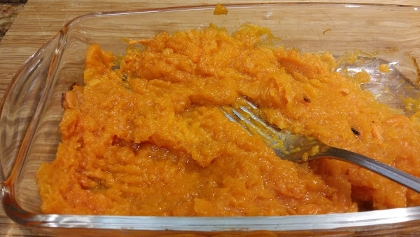 Cuando esté asada, la chafamos con un tenedor hasta obtener un puré fino.