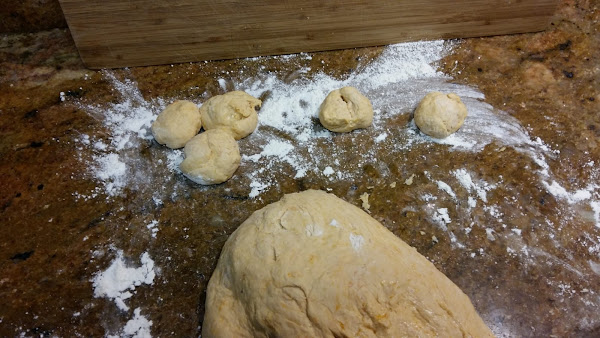 Cortaremos la masa en bolitas y ponemos ya la sarten al fuego con aceite de oliva o girasol. Yo he usado de oliva.