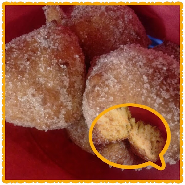Dejamos que repose el tiempo que le cuesta al aceite calentarse. Una vez caliente vamos a ir haciendo bolas con dos cucharas, como si fueran croquetas, pero no muy grandes. Giramos para que doren por todos sitios y sacamos a escurrir. Ahora solo queda rebozarlos en azúcar y canela y disfrutarlos.