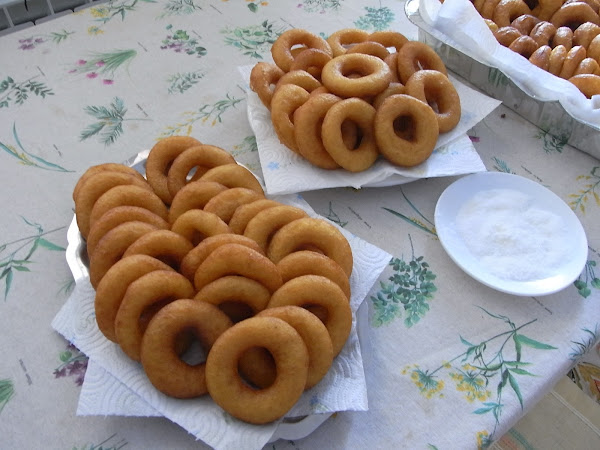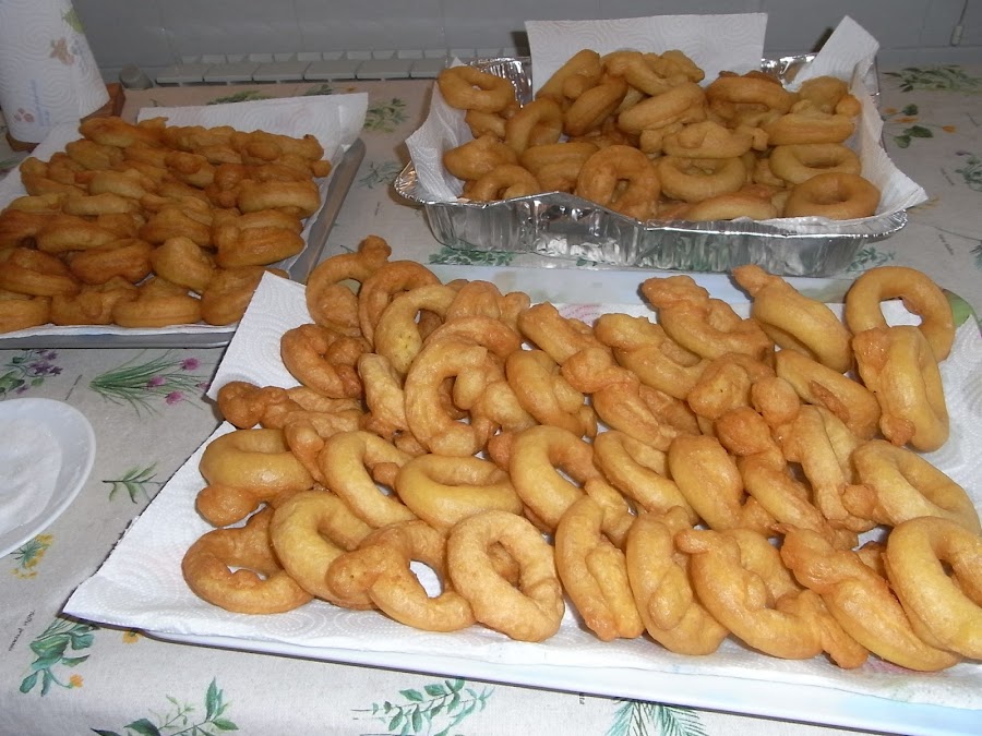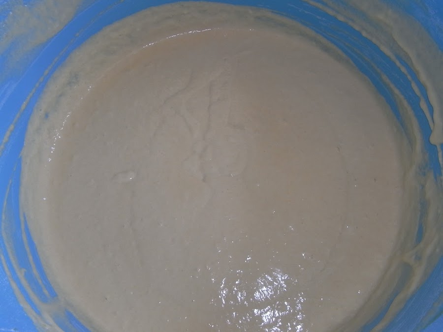 Para esta receta lo de la experiencia cuenta y mucho porque la pasta no tiene que estar ni muy clara ni muy espesa y como lleva levadura fresca se tiene que dejar un tiempo "para que se haga buena" como dicen mi madre y mi tía. Y luego el punto bueno es cuando la dejas caer y no se apelotona aunque tiene que tener su consistencia.