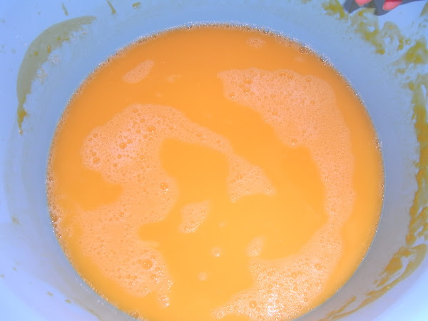 Para 1 kg. de calabaza pusimos 1 kilo de harina, 2 huevos, un pellizco de levadura fresca (25 grs. más o menos), la ralladura de un limón y un pellizquito de sal.