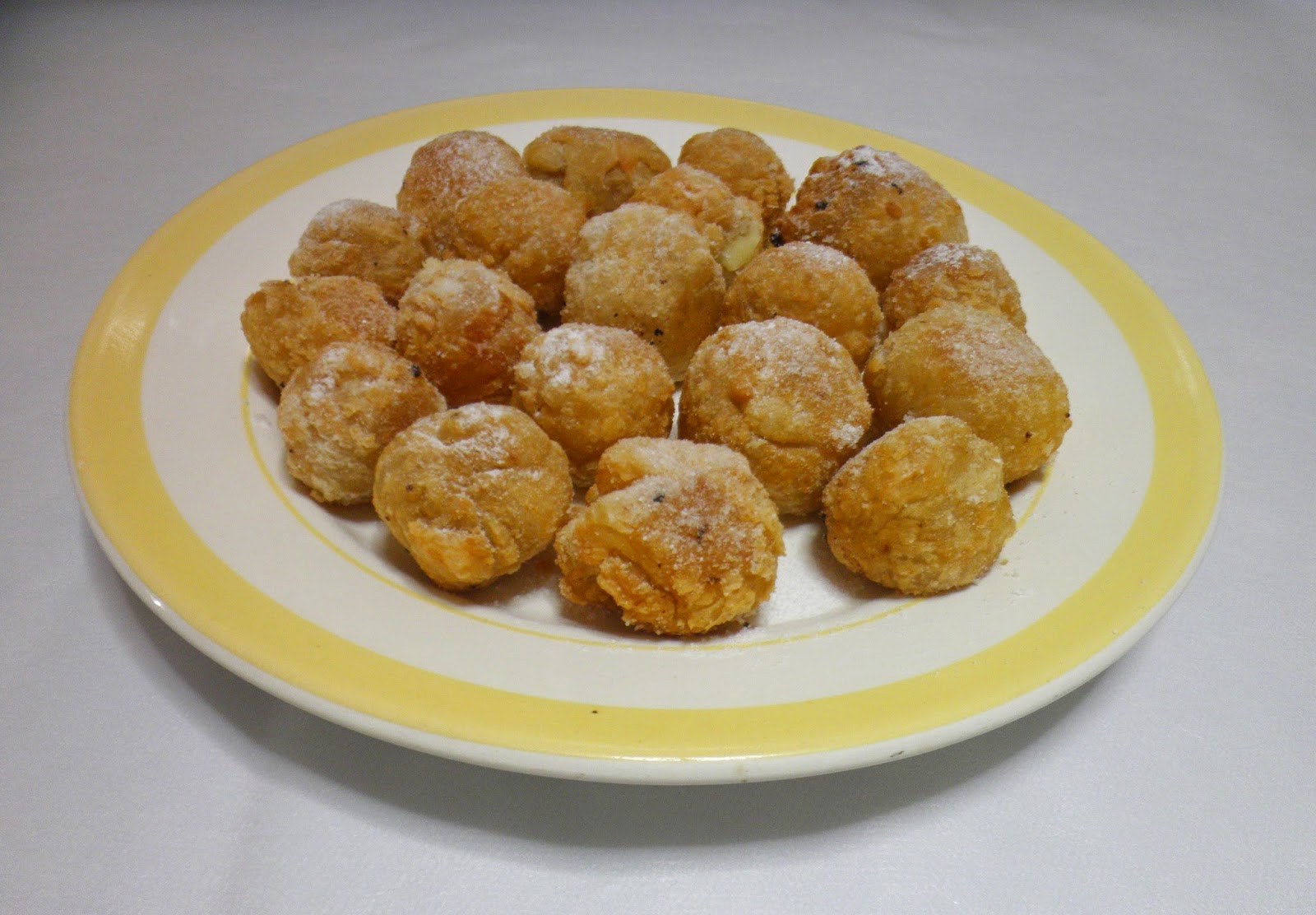 Y por último freír las bolitas en una sartén con abundante aceite, freír hasta que se doren. Una vez doradas sacar del fuego, dejarlas sobre papel absorbente y echarles por encima azúcar glas.