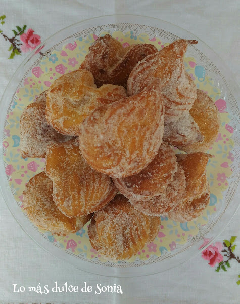 Los vamos colocando sobre papel de cocina y rebozamos por azúcar y canela.