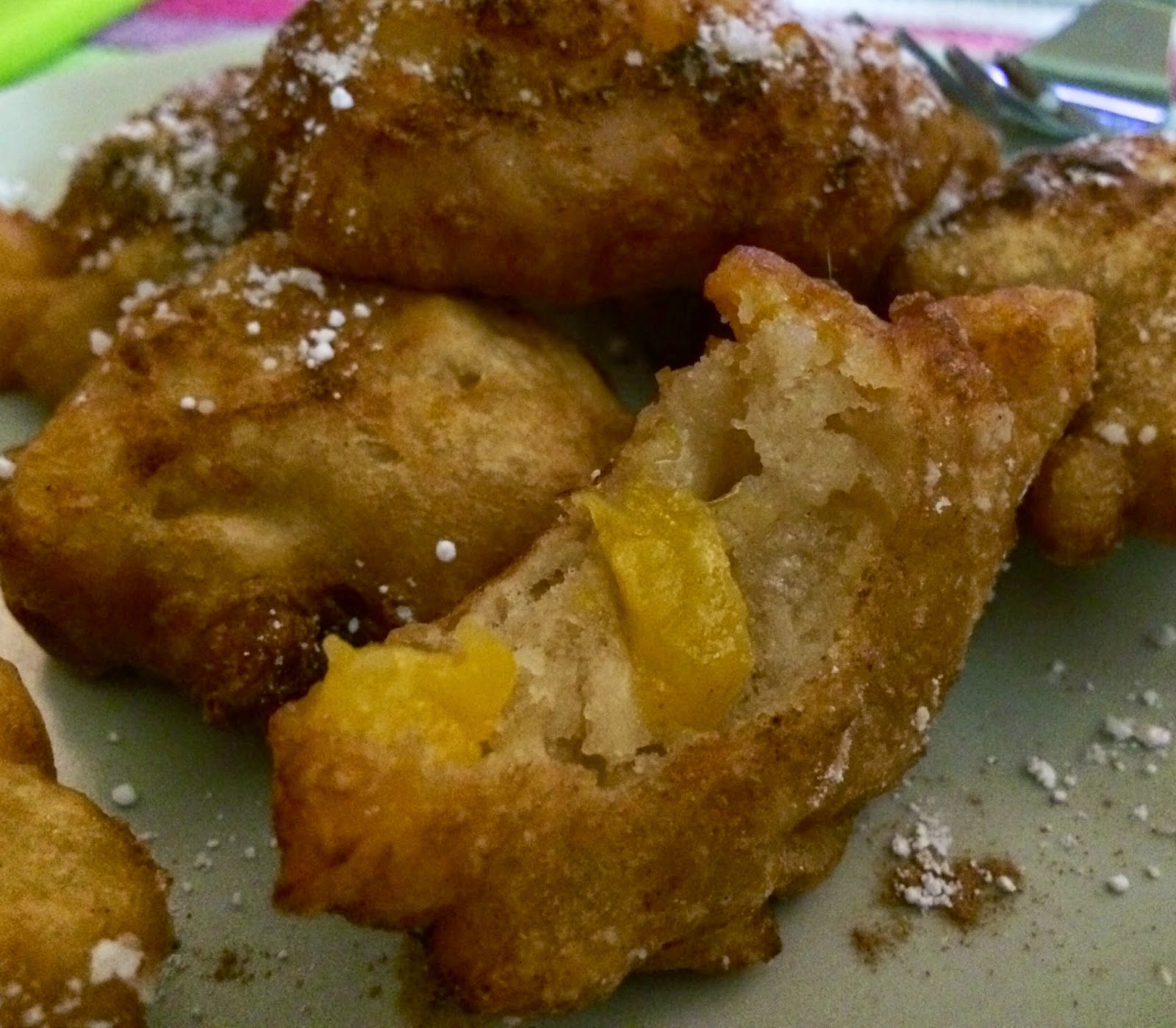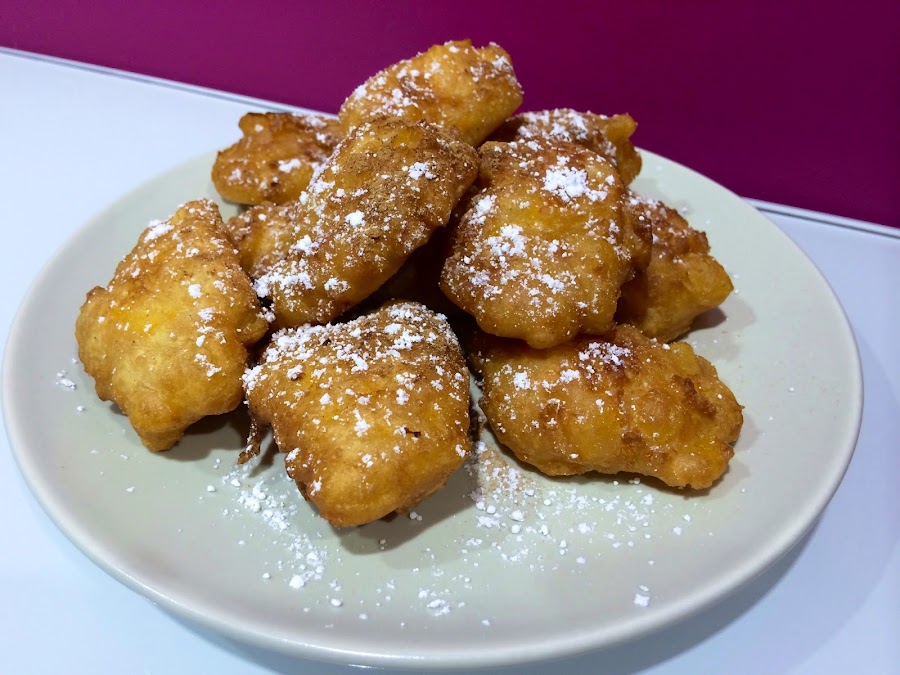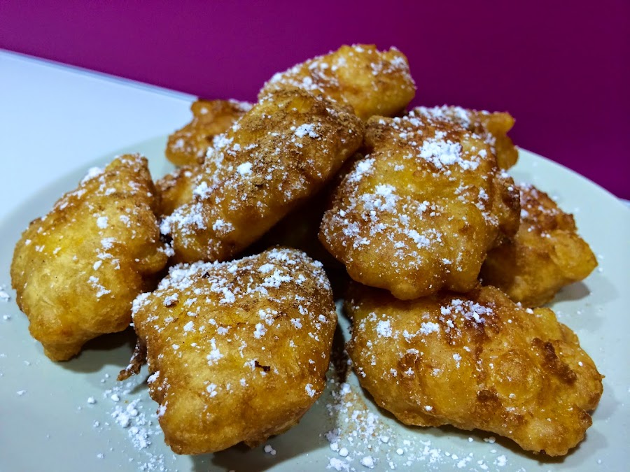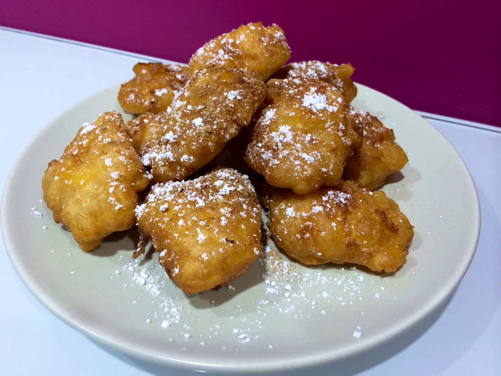 9. Cuando los tengamos todos fritos emplatamos, espolvoreamos un poquito de canela y azúcar glass por encima.
