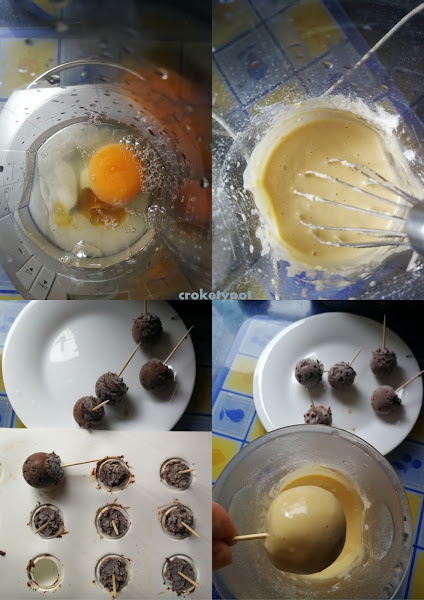 Masa para el rebozado: 1 huevo, 85 gr de harina normal, agua mineral 38 gr., azúcar blanca 17 gr., bicarbonato sódico1 gr, y miel 4 gr.