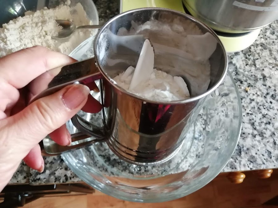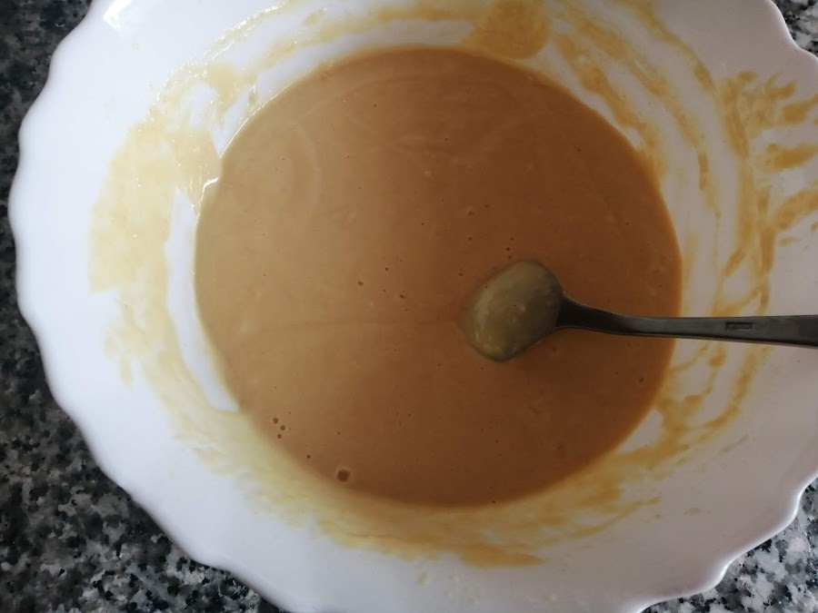 En un bol aparte tamizamos la harina junto con la levadura y la añadimos poco a poco con el resto de ingredientes mezclamos muy bien hasta que no queden grumos