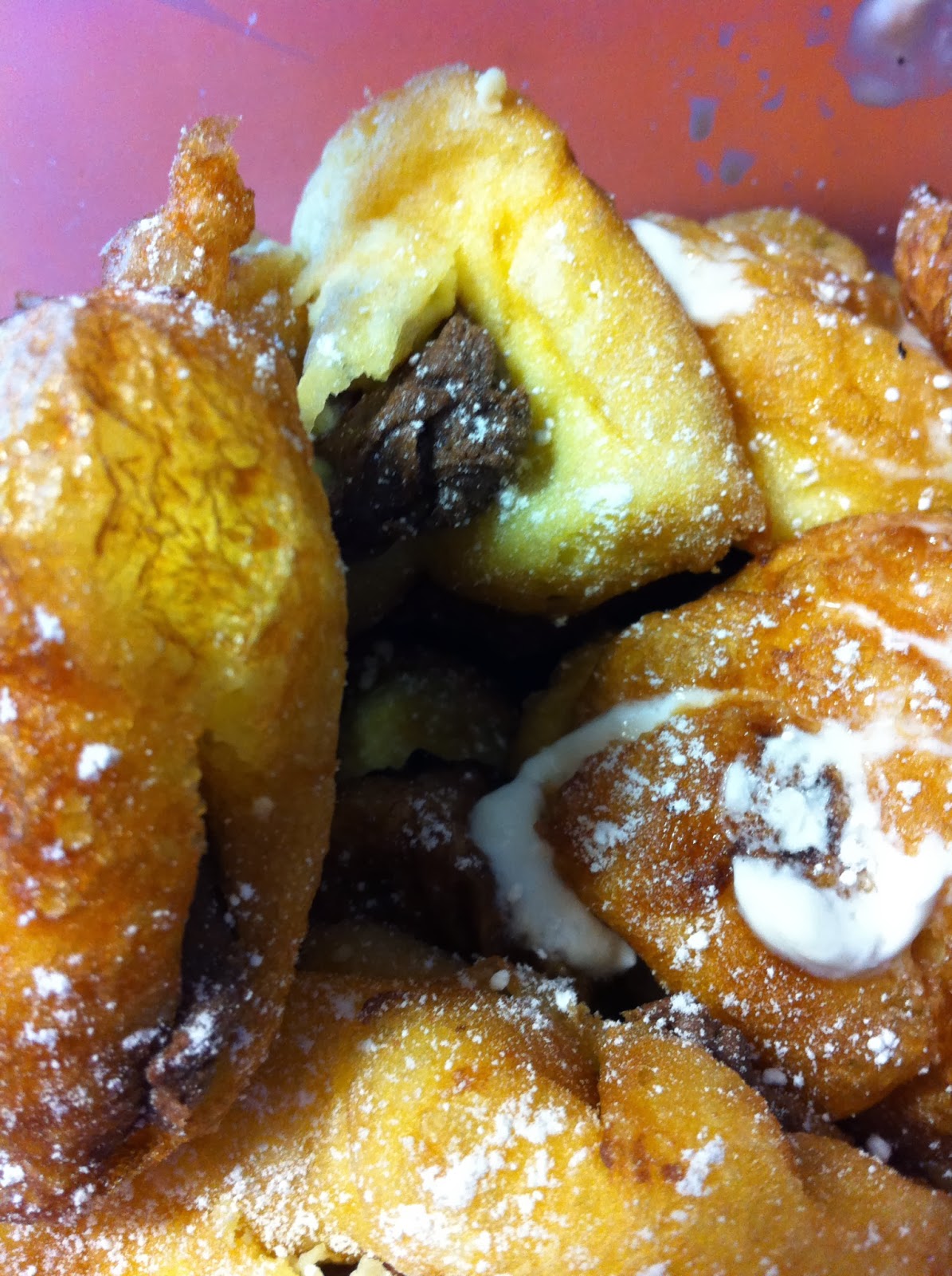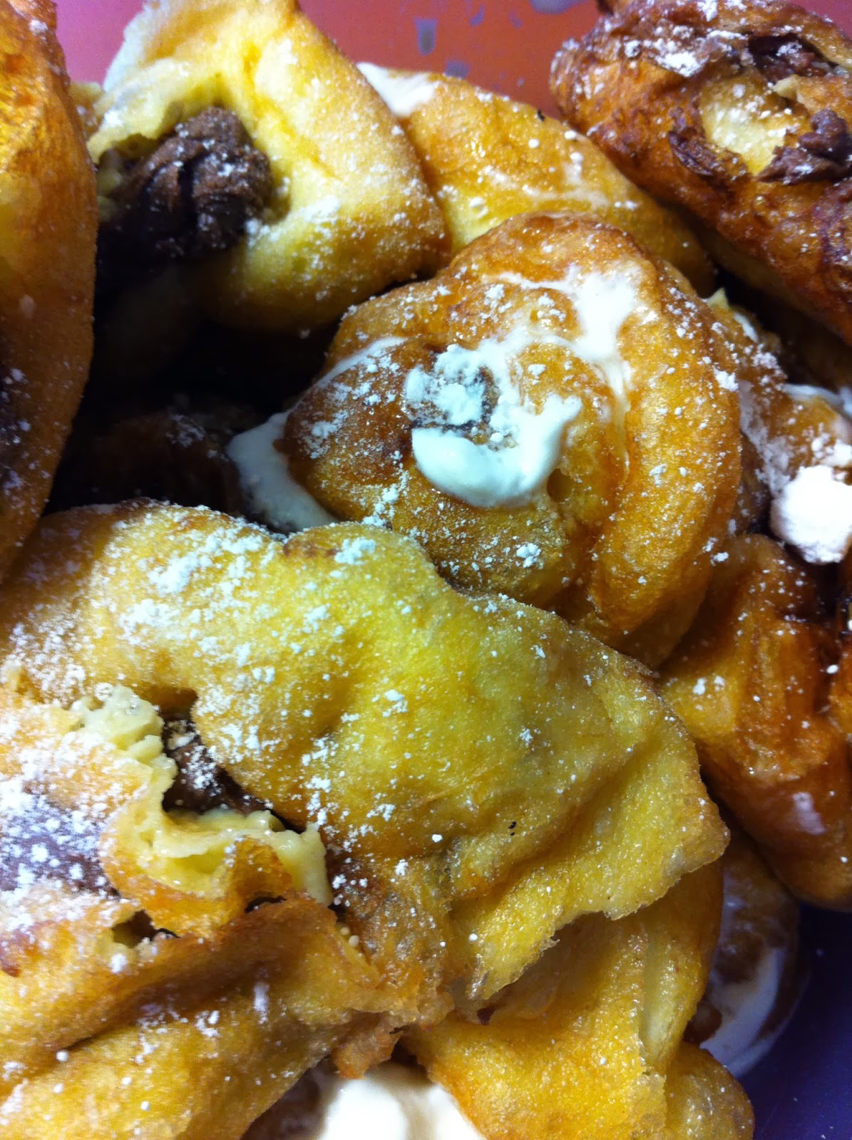 Yo los rellené con nata (crema de leche) montado y con nocilla..... en esa tarde nos les zampamos todos jejejejeje. Para rellenarlas se les hace un corte en el medio del buñuelo y se mete lo que quieras immmmmm.