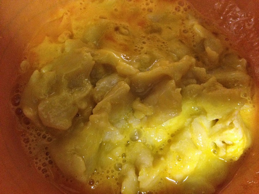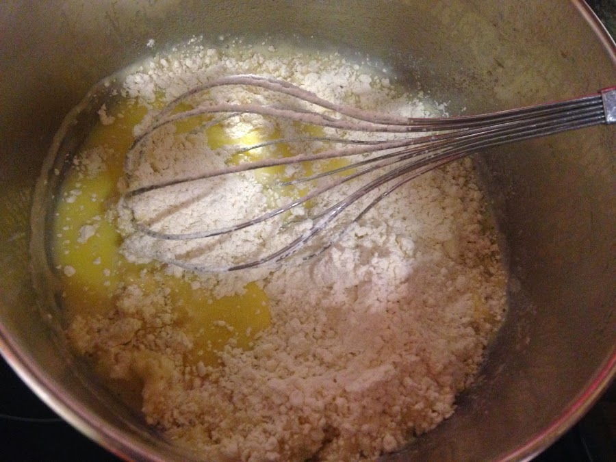 Cuando la masa este fría agregaremos los dos huevos y mezclaremos bien.