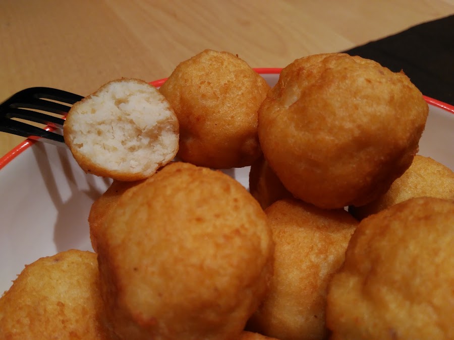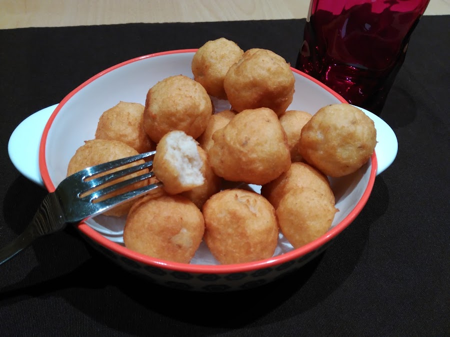 - Ir haciendo las bolas y metiendo en el aceite, cuando se hinchen un poco y se doren, ya están a punto.