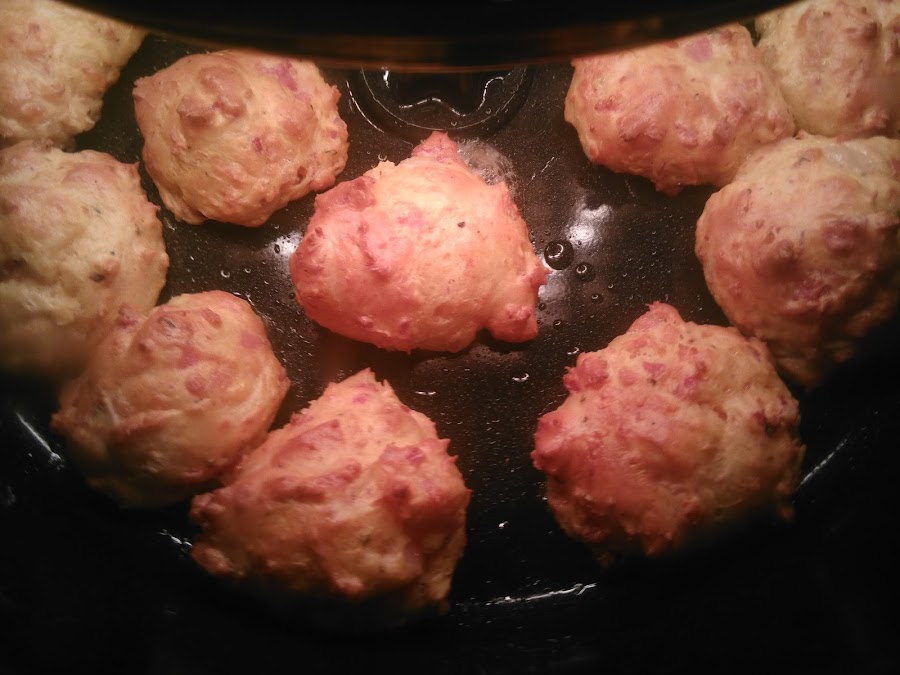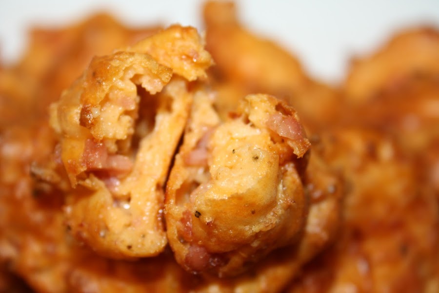 El resultado fueron unos buñuelos deliciosos, nada grasosos, pues van fritos/horneados con apenas una pulverización de aceite, y por tanto, no resultan nada pesados... para cuando os deis cuenta, no quedará ni uno en el plato.