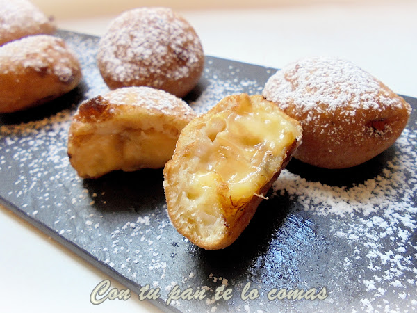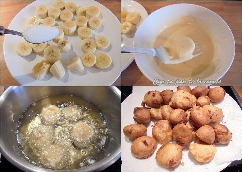Los postres de sartén como las tradicionales rosquillas, torrijas o buñuelos, son mi perdición. Son postres fáciles de elaborar cuyos ingredientes son todavía más fáciles de encontrar, así que vamos a cerrar los ojos al tema calórico y te propongo disfrutar de unos buñuelos de plátano para chuparte los dedos.
