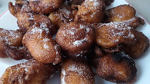 Esta receta hay que hacerla con antelación porque necesita al menos dos horas de reposo en la nevera. Por lo demás, estos buñuelos de plátano sin gluten, son muy fáciles de hacer. Una receta de buñuelos muy sencilla y fácil de preparar que además es apta para celiacos y personas con intolerancia al trigo. Y es que me gusta hacer las recetas de buñuelos con maicena porque quedan mas ligeros y digestivos, jugosos, con un suave y delicado sabor que me encanta. Y que decir de los trocitos de plátano, que sabor le dan, son una ricura total. Anímate a prepararlos y ya me dices que tal, si utilizas plátanos maduros mejor que mejor, mas sabor tendrán, así además es una forma de aprovecharlos cuando ya tienen unos días en el frutero, no los tires, úsalos en esta receta¡¡
