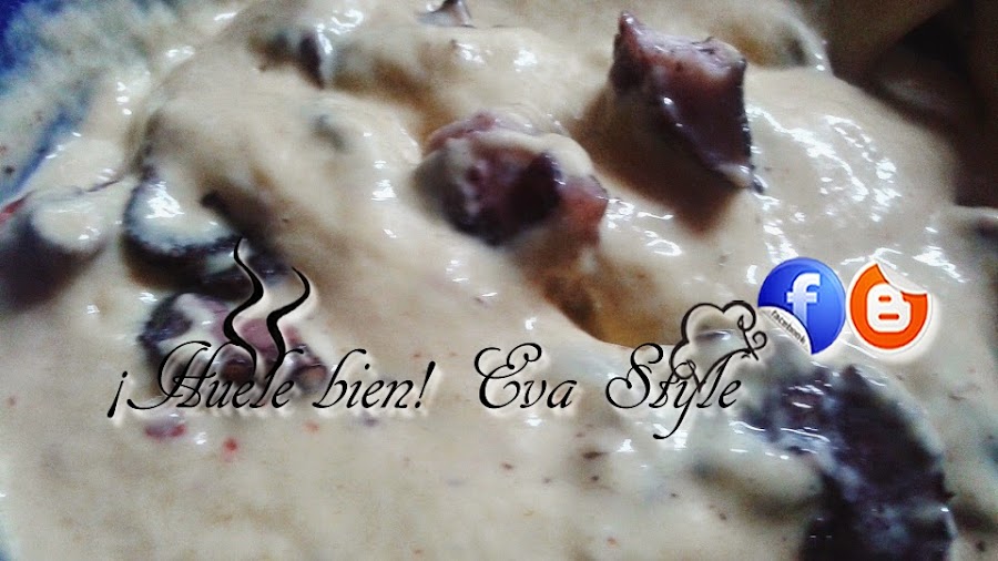 2.- Añadir los huevos de a uno, removiendo muy bien. Le ponemos unas cucharas de mojo y una pizca de sal y seguimos mezclando.