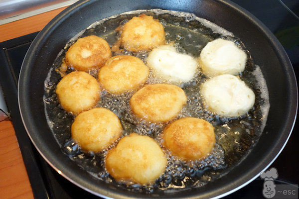 Los buñuelos de queso se irán hinchando poco a poco a medida que se fríen ¡ojo que se queman con facilidad!