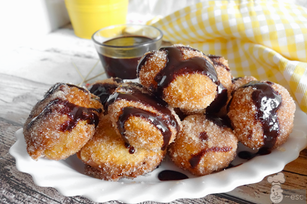Una vez fritos, se pueden comer tal cual o rellenar con crema pastelera, pero esta vez opté por servirlos con un sirope de chocolate casero. ¡Quedaron de lujo!
