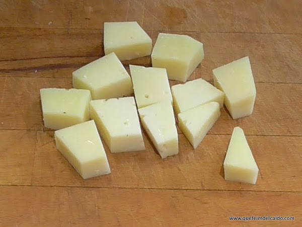 Cortamos los 120 g. de queso manchego en porciones más o menos iguales.