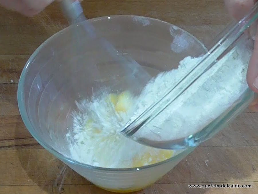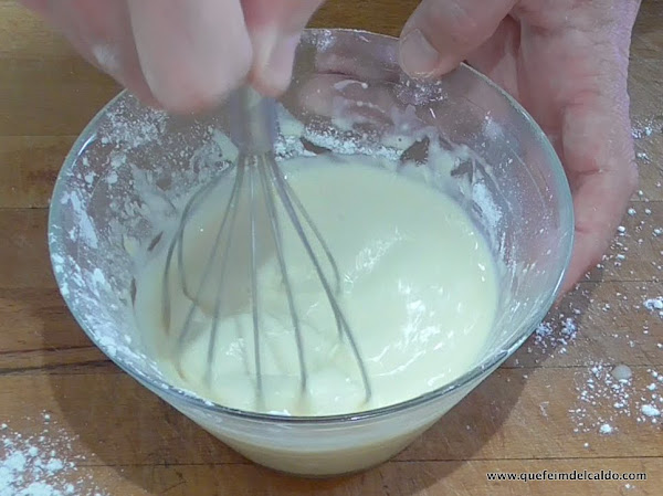 Una vez la harina ya ha absorbido el huevo empezamos poniendo la cerveza poco a poco.