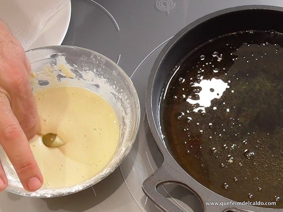 La masa tiene que quedar un poco líquida, aunque no mucho, tenemos que pensar que se tiene que rebozar bien las brochetas.