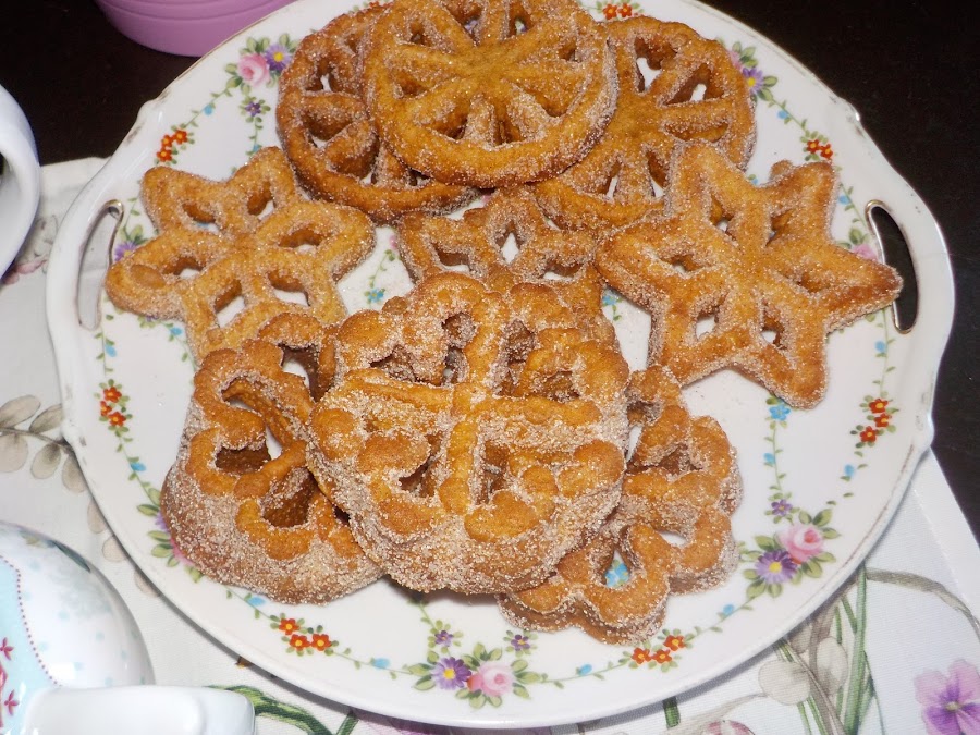 Una vez fritos todos los buñuelos, emborrizamos en una mezcla de azúcar y canela.