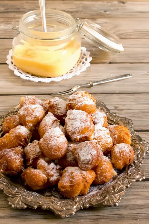 Por supuesto le dije que sí, aunque pensé que no tenía nada que ofrecerle, pero abrí la nevera y allí estaba el frasco de lemon curd, enseguida me vinieron a la cabeza los buñuelos, pensé que estarían deliciosos con esa crema de limón y no me equivoqué.