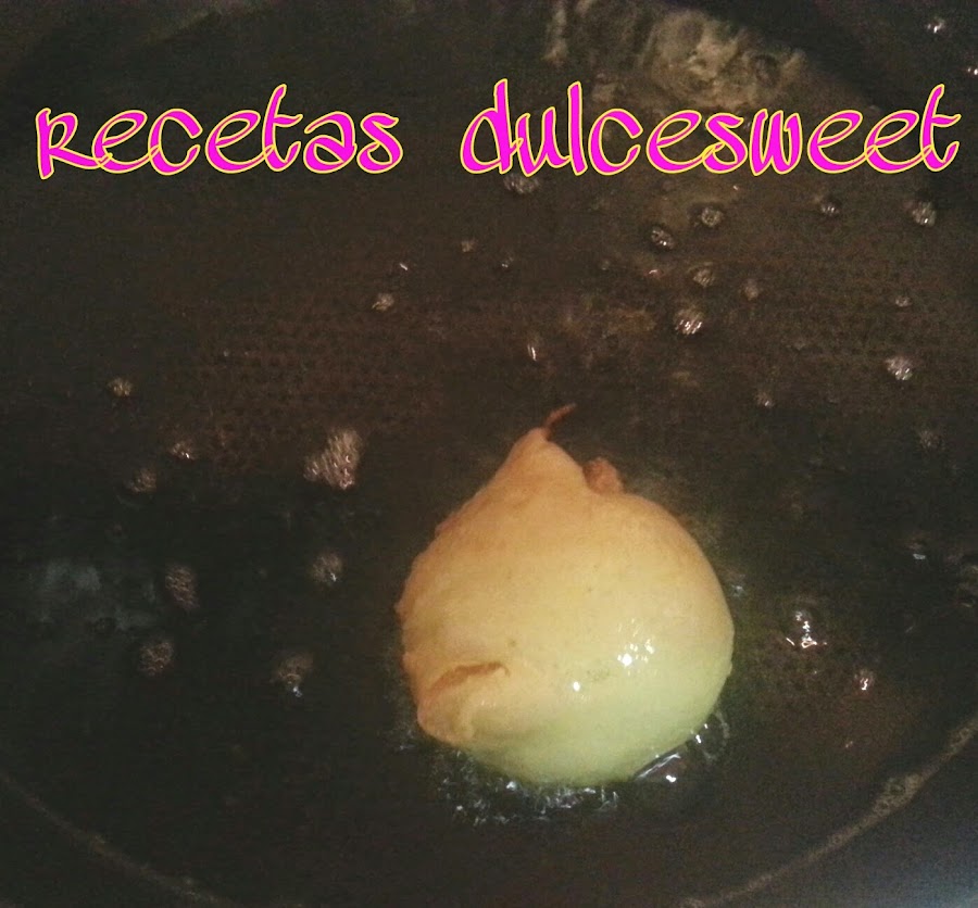 5- Pasado el tiempo, pondremos una sartén con abundante aceite, cuando este caliente lo pondremos a fuego medio e iremos incorporando la masa, primero probamos con un poco y si vemos que se hace bien pondremos mas, yo utilizo dos cucharas para poner la masa, vigilar de ponerlas muy juntas, ya que crecen y se podrían pegar unas con otras.