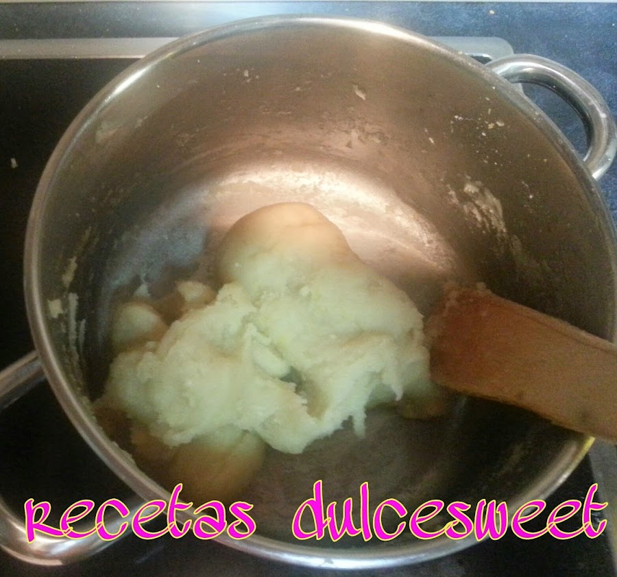 2- Cuando el agua empiece a hervir, pondremos la harina y removeremos hasta que la masa que se forme no se pegue en las paredes de la olla.