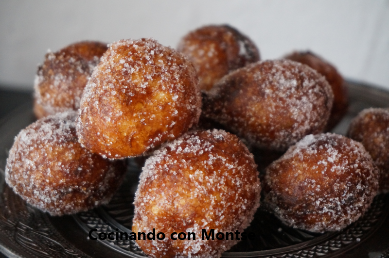 Los buñuelos se elaboran a partir de una masa de harina, leche y huevos , que se fríen en aceite y se rebozan en azúcar. Se hacen en forma de bolas y suelen hacerse más grandes cuando los freímos.