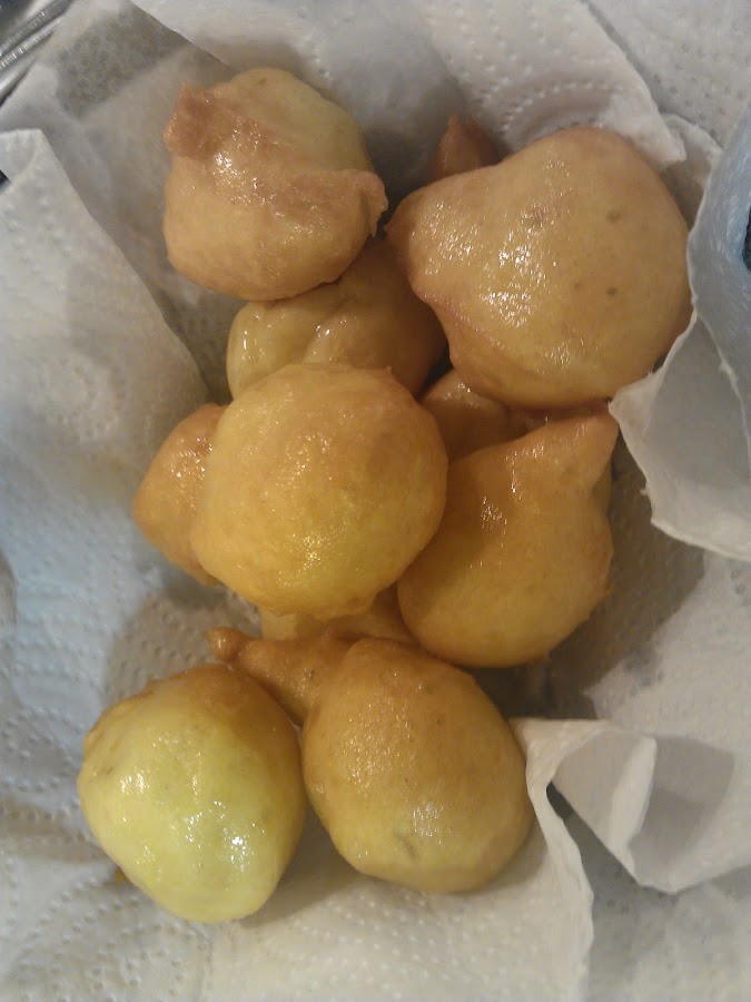 Pues ayer, tal y como manda la tradición, hicimos buñuelos de viento, dulce tipico de estas fechas. La preparación es fácil, aunque entretenida..... Se llaman de viento porque en su interior se quedan huecos, como podéis ver en la foto.