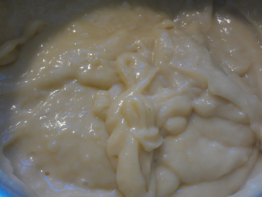 3. - Retirar del fuego y dejar que la masa se entibie, entonces incorporar los huevos de uno en uno, hasta que el primero no se haya integrado en la masa, no incorporar el siguiente.
