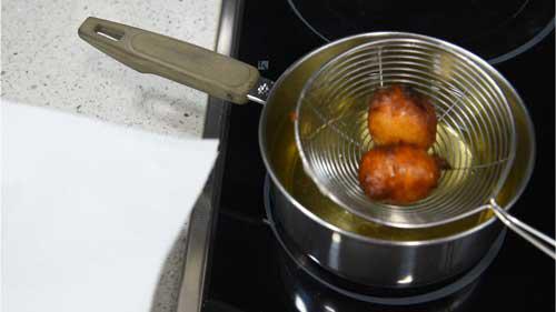 Lo mejor es que controles el aceite que debe estar a fuego medio, no demasiado fuerte, para que los buñuelos se hagan bien por dentro y se doren por fuera.