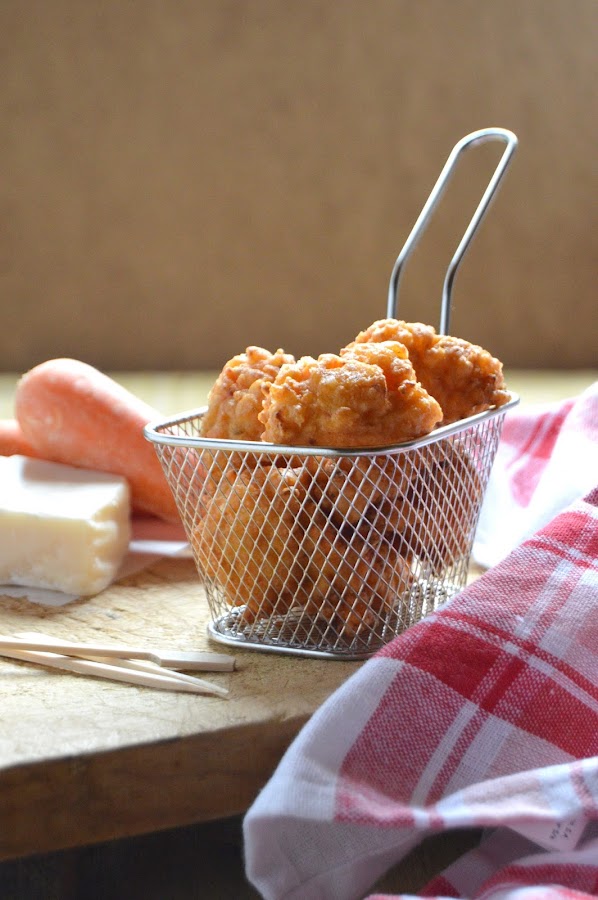 Hoy os dejo una propuesta muy sencilla y riquísima, unos buñuelos de zanahoria y parmesano ideales tanto para servir de picoteo como para acompañar otras preparaciones.
