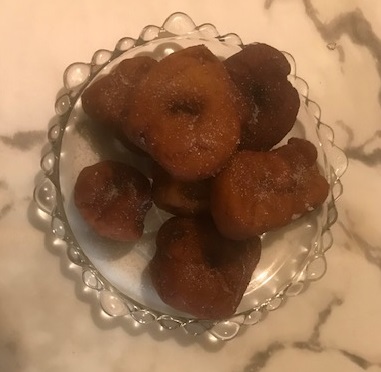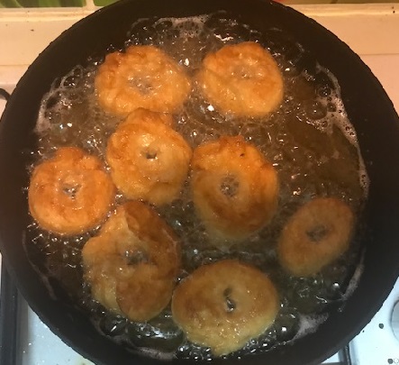 Reservar la masa en un bol hasta que haya doblado su volumen. Preparar aceite bien caliente en una sarten y poner la masa en porciones pequeñas (hacer forma de rosquillas).
