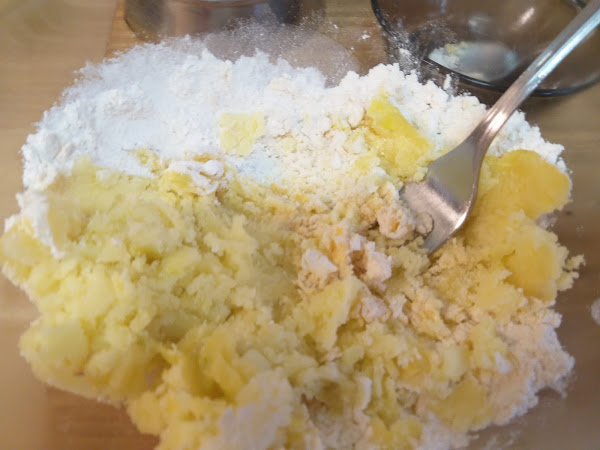 A continuación, mezclamos la patata cocida y pelada y la leche con lo que iremos formando una especie de masa.