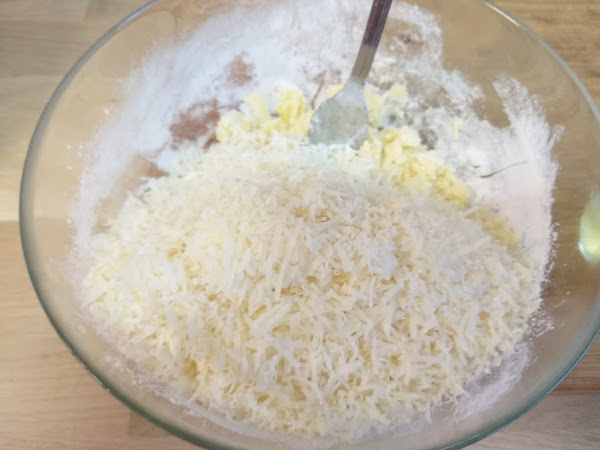 Lo siguiente es añadir el queso Idiazabal rallado y mezclar bien. En este paso al final he decidido utilizar las manos (bien limpias eh?) y mezclarlo bien.