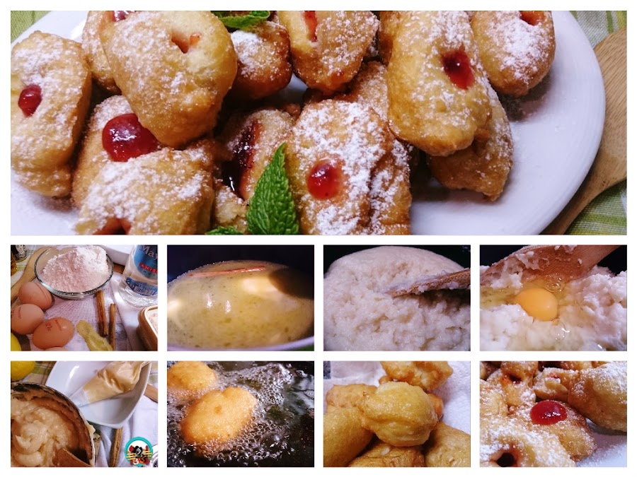 Después de un parón obligado sin poder publicar ninguna receta nueva, por motivos de salud. Hoy vuelvo con unos ricos buñuelos rellenos con mermelada de fresa..., todo un capricho culinario para disfrutar de un delicioso bocado con una taza de un buen café, licor o té. También están geniales para comerlos en los desayunos.