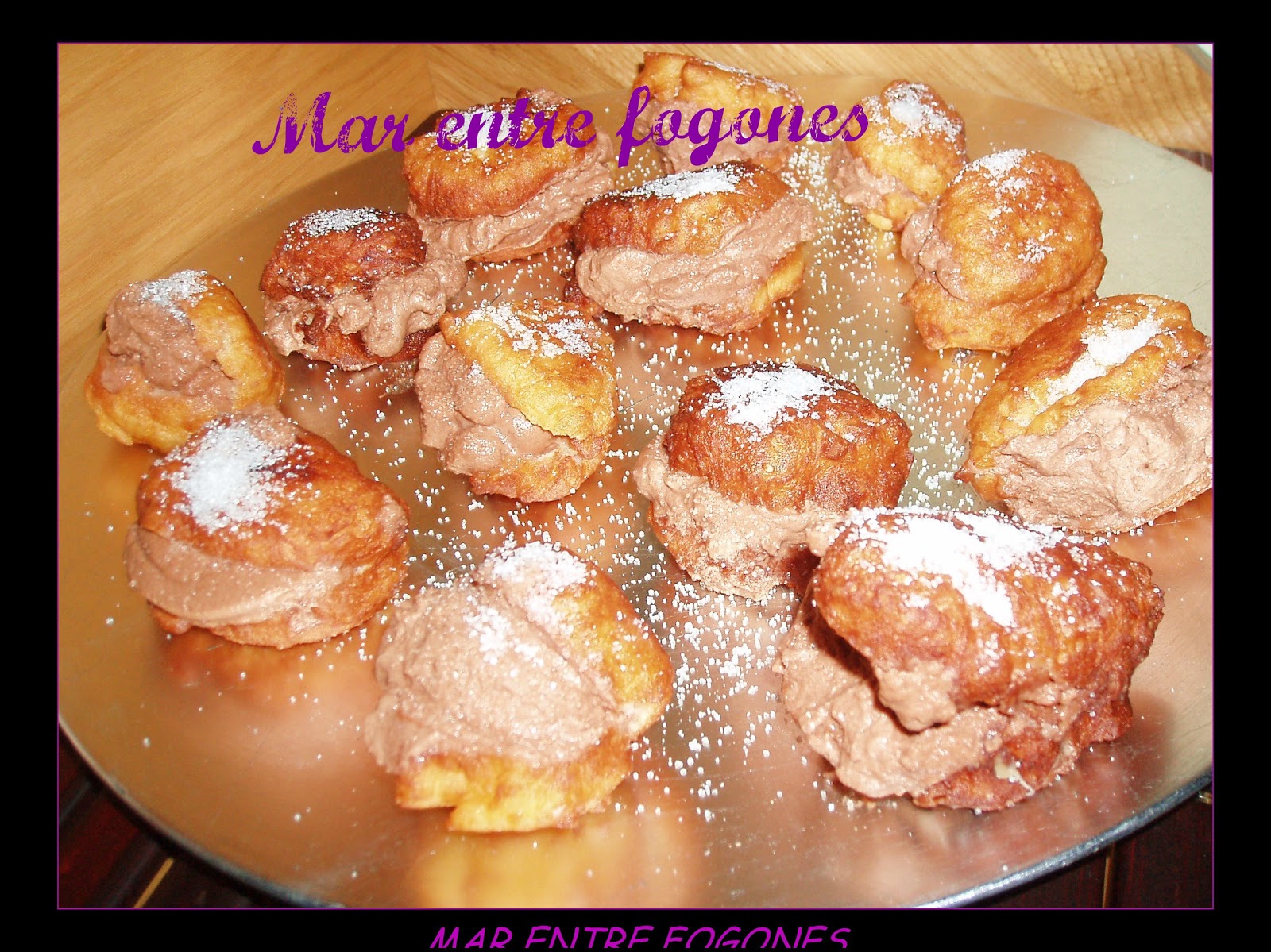 Cuando estén fríos los buñuelos los partimos a la mitad y rellenamos al gusto ( nata montada (crema de leche), crema pastelera...)