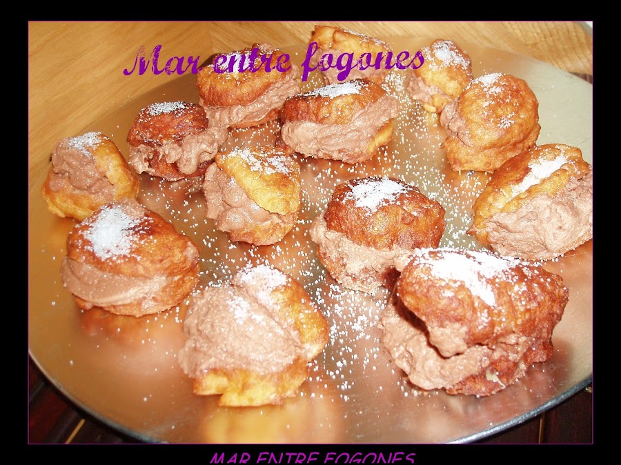 Ponemos en una manga pastelera y rellenamos los buñuelos.