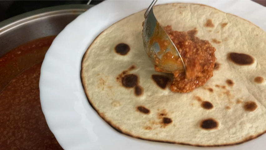 Pon la tortilla de trigo sobre una sartén bien caliente y hazla un poco por ambos lados.
