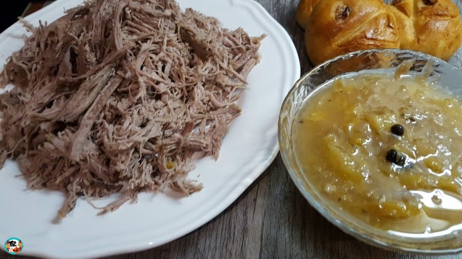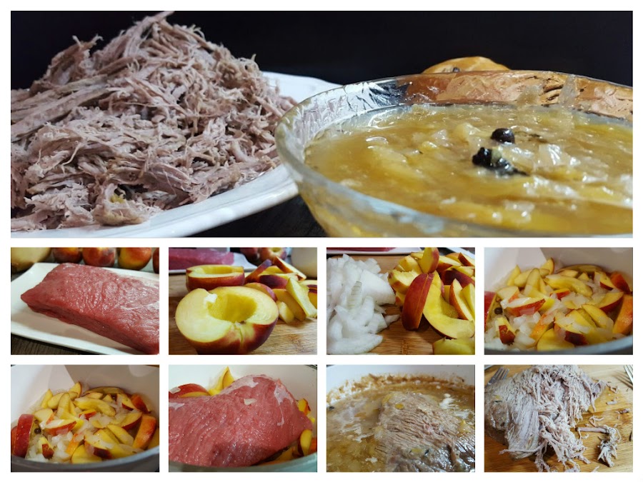 Un buen plato de carne mechada nos cunde para varios días y ponemos comerla de diversas manera. Lo normal es cocinarla con una salsa de tomate y zanahoria... igualmente podemos hacerla con fruta de temporada. Os puedo segurar que queda súper deliciosa.