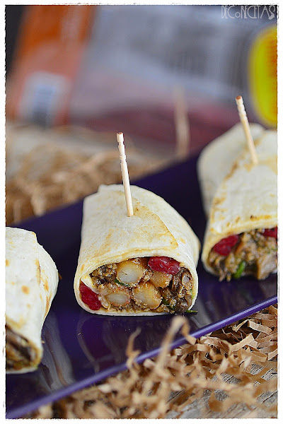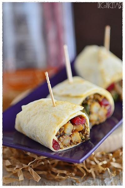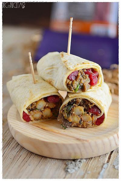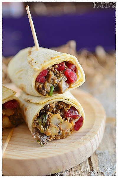 El toque del embutido se lo dan estas barritas de salchichón de Espuña. Son muy finas, y se comen con facilidad, así que las partí en rodajitas que incorporé al revuelto y realicé así los burritos.