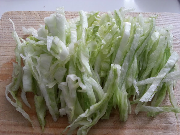 1. - Cortamos la lechuga en tiras muy finitas y reservamos.