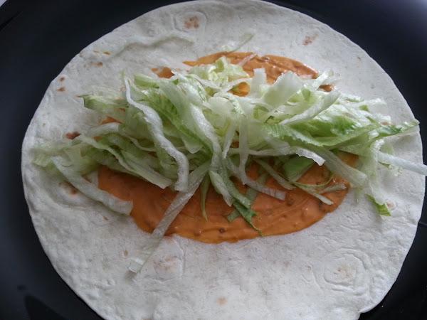 3. - Colocamos un poco de lechuga en el centro, pero a lo largo.