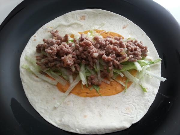 Si queréis simplificar las cosas, echad todos los ingredientes en un bol, mezclarlos y cada cual que se rellene el burrito. Y listo!!!!!!
