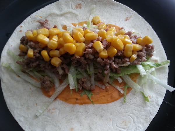 Y por eso el nombre de ranchero, porque lleva maíz, salsa barbacoa, carne...y creo que le pega ese nombre. Así que os explico ....